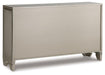 Reflect your love for contemporary style with this accent cabinet. It features a mirrored top and beveled mirror accents, adding both light and a touch of glam to your space. Decorated with faux crystal and chrome-tone pulls, the textured silvertone door fronts open to reveal adjustable shelving to meet all your storage needs.