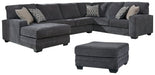 Talk about easy street. This effortlessly chic 3-piece sectional with ottoman puts you at the intersection of cool and comfortable. Ultra-deep seats are custom made for afternoon naps and movie night marathons. So plush to the touch, the slate gray upholstery is beautifully on trend.